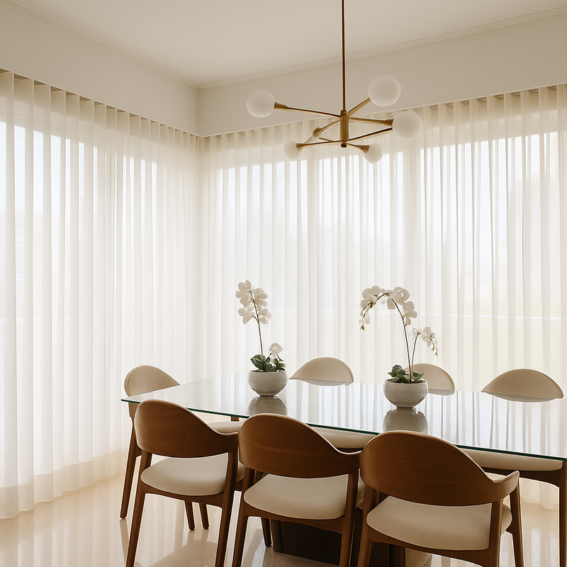 Suavidad, caída natural y luz equilibrada. Un toque sofisticado para salones y dormitorios.